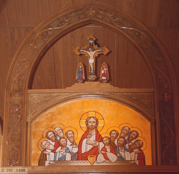 The adaptation and renovation of this old Roman Catholic church from the eighteenth century gives the building a special atmosphere. The church has been lovingly renovated, with real attention to detail, and Coptic-Orthodox symbols and element have been integrated into the existing building. «The fact that the renovation of the old house of worship was so well managed fills the Coptic community of Meyrin with great pride.» notes Raouf Morcos during our tour of the church, pointing out a place in the church wall where the original foundations can still be seen.