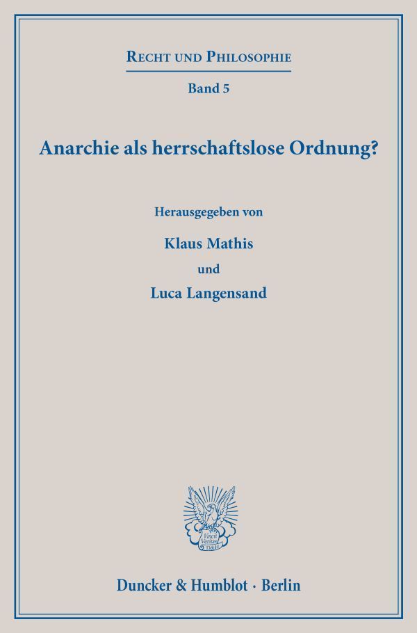 - Mathis, Klaus/Langensand, Luca (Eds.), Anarchie als herrschaftslose Ordnung?, Recht und Philosophie, Vol. 5, Berlin 2019, https://www.duncker-humblot.de/buch/anarchie-als-herrschaftslose-ordnung-9783428156702/?page_id=0