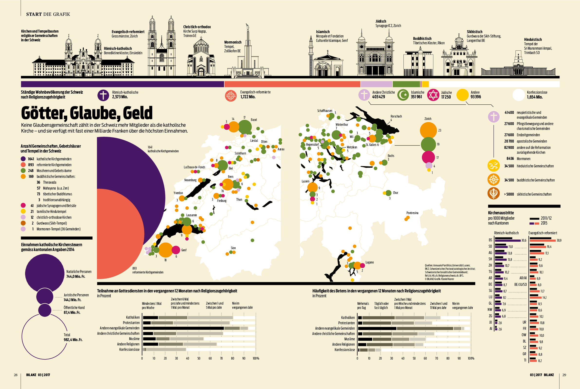 Zuerst publiziert mit Daten des Zentrums Religionsforschung in der «Bilanz» vom 24. 2. 2017. Verwendung mit freundlicher Genehmigung des Verlags.