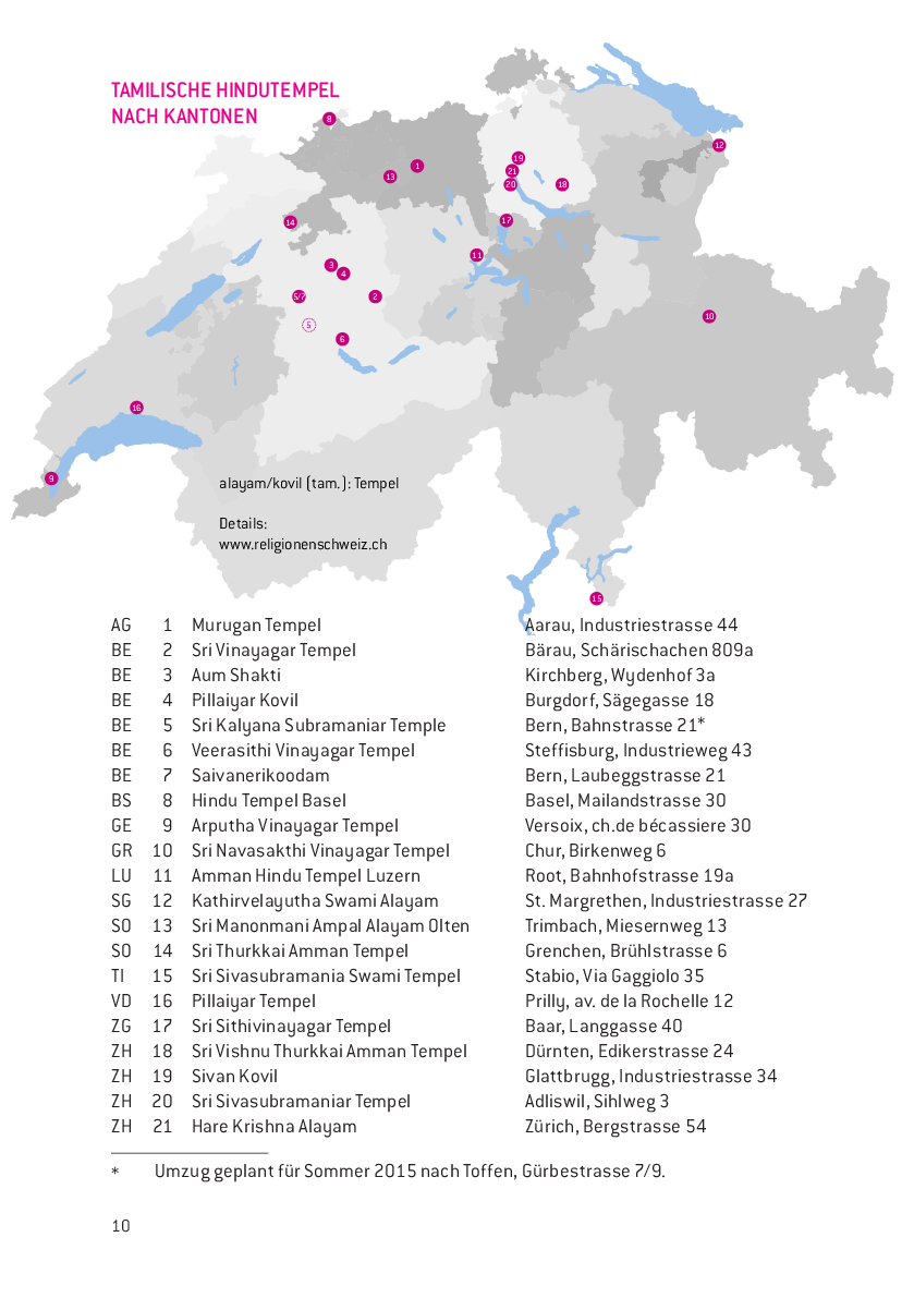 Hindu-Gruppen und -Zentren in der Schweiz (2018)
