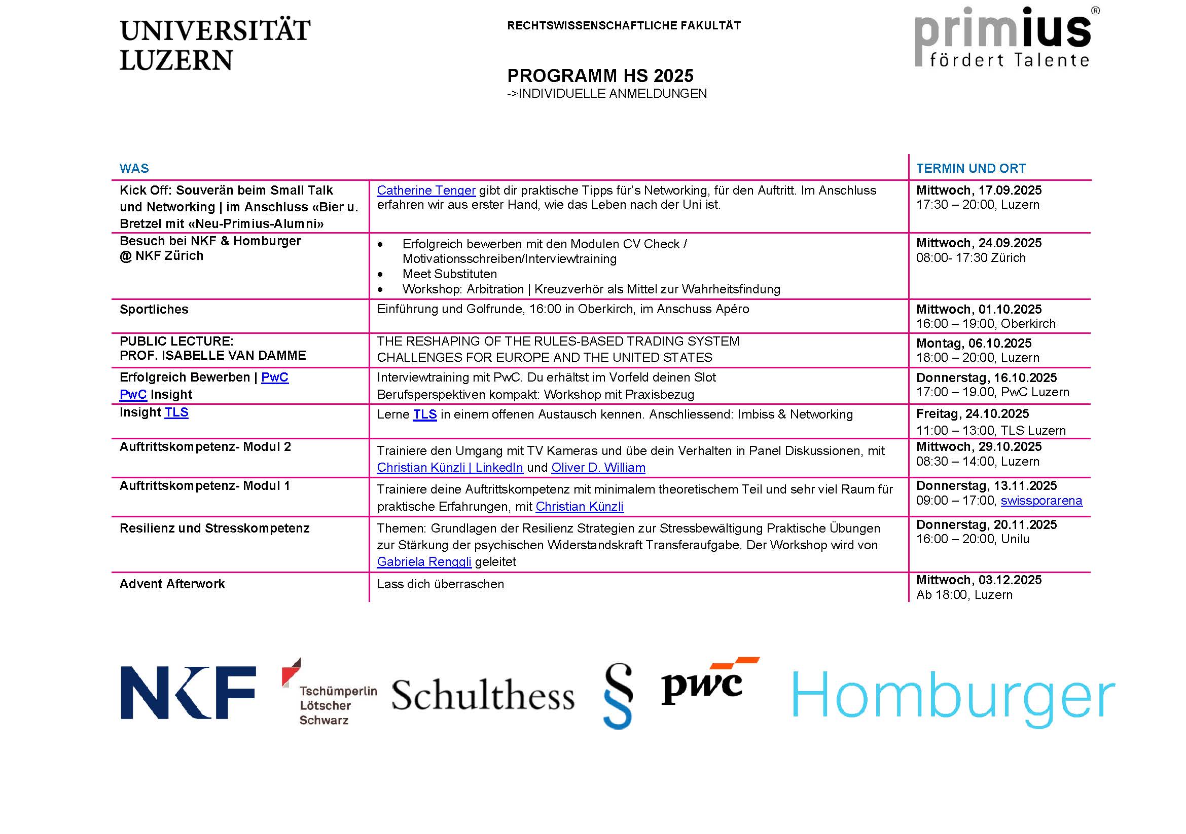• Bachelor: mind. im 3. Semester; Assessment abgeschlossen; Notendurchschnitt mind. 5.2
