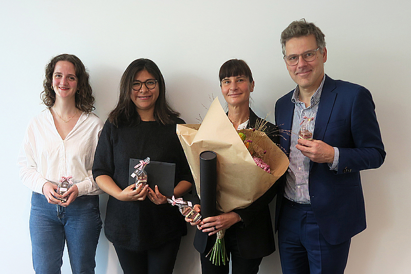 (v.l.) Anja Mesmer, Dr. iur. Maria Vasquez Callo-Müller, Prof. Dr. Mira Burri, Rektor Martin Hartmann.