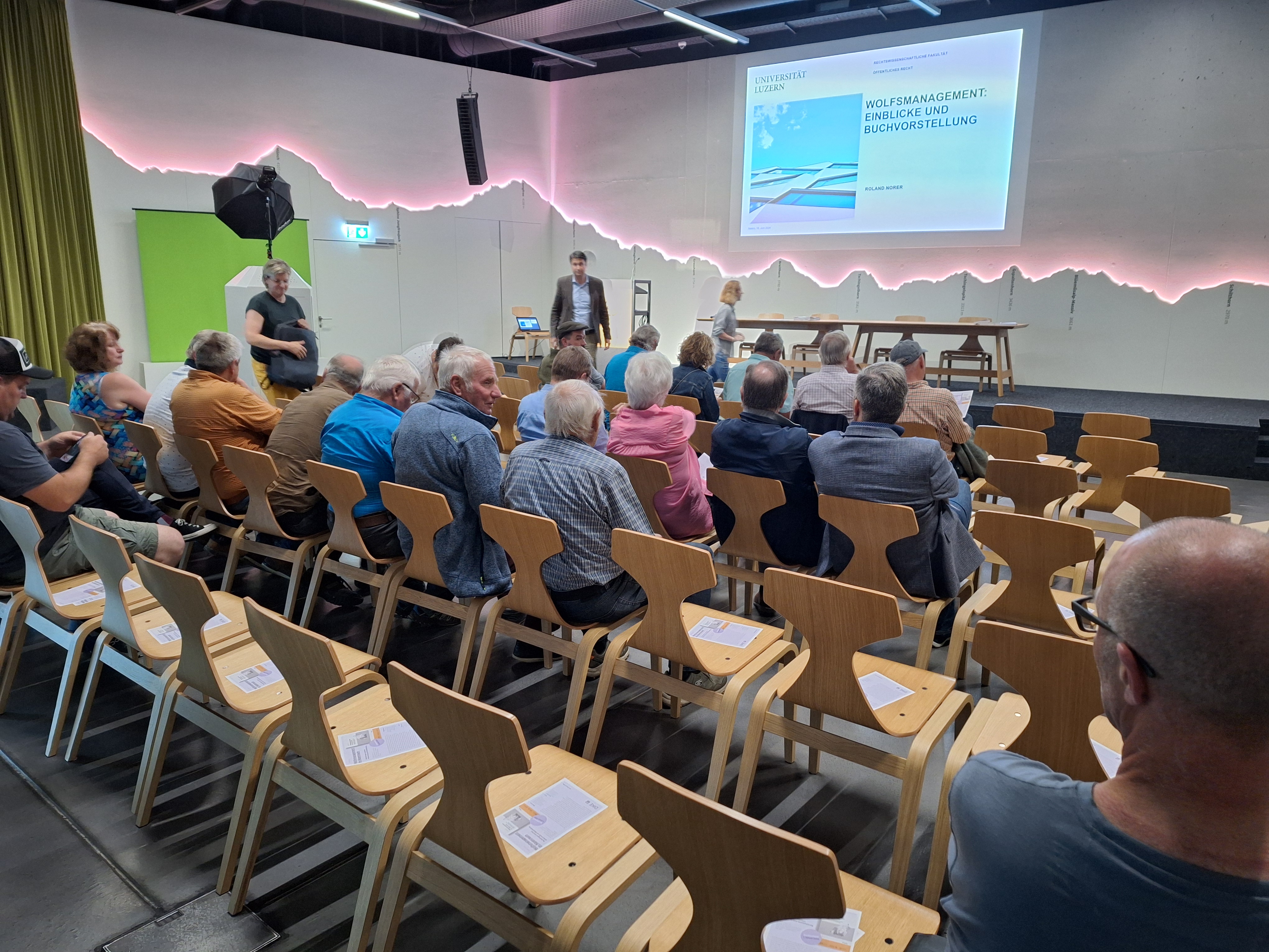 Die künftige Ausgestaltung des Regelungsrahmens für Wolfsschutz und Wolfsmanagement steht derzeit vielfach zur Disposition, in der EU, in einigen Mitgliedstaaten und in der Schweiz. Anlässlich des Erscheinens des Buches «Wolfsmanagement im Alpenraum. Rechtsfragen zwischen Artenschutz und Weidehaltung» von Prof. Roland Norer (Universität Luzern) wird mit mehreren Veranstaltungen an ausgewählten Orten des deutschsprachigen Alpenbogens ein Diskussionsprozess mit Fokus auf die alpine Weidewirtschaft auf Ebene der Betroffenen, der Politik und der Wissenschaft ermöglicht. Diese Alpenreise führt sowohl zu den Hotspots (Wallis, Graubünden, Salzburg, Tirol) als auch in die politischen Zentren (Bern, Wien, München) und Gebiete, in denen eine Rückkehr der Wölfe erst begonnen hat (Uri, Südtirol, Bayern). Im Austausch mit Wildtierbiologen, Alpenhistorikern, Alpbäuerinnen und -bauern, Förstern, Wildhütern, Naturschützerinnen und -schützern, Jägerinnen, Funktionären, Politikerinnen, Verwaltungsmitarbeitenden und Medienschaffenden wird das neue Buch vorgestellt, welches mögliche Handlungsoptionen zur Debatte stellt.