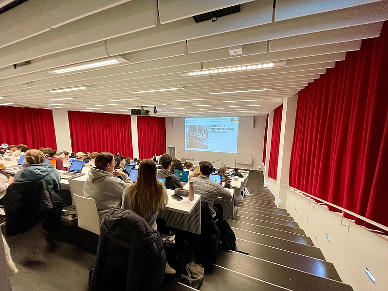 Im Februar 2025 durften Dr. Naemi Jacob und Dr. Marina Pletscher rund 100 Studierende in der Vorlesung Human Resource Management (HRM) an der Universität Luzern begrüssen.