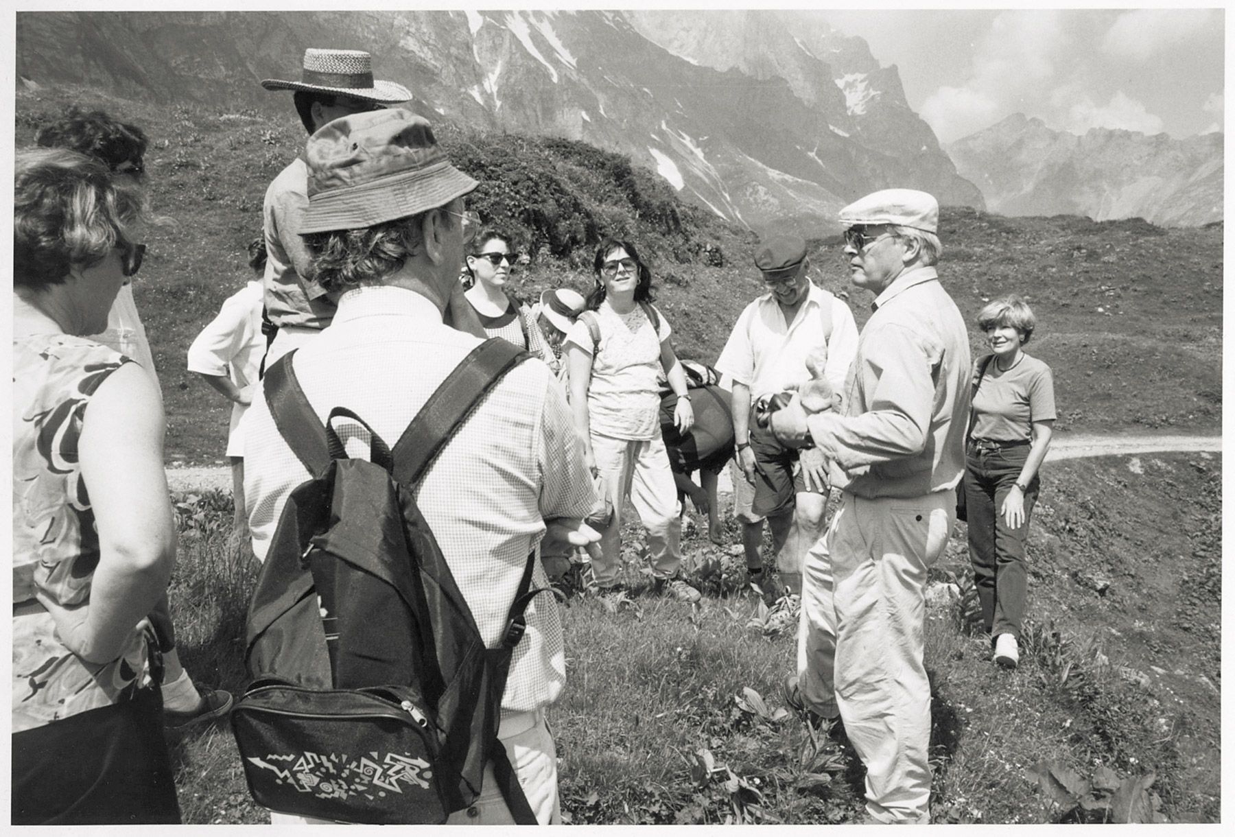 Guy P. Marchal, bis zu seiner Emeritierung 2003 Geschichtsprofessor an der Universität Luzern und Gründungsdekan der Fakultät von 1993, erinnert sich anhand der obigen Fotografie an jene Anfangszeit – Marchal ist auf dem Bild rechts mit heller Schirmmütze zu sehen: «Die Aufnahme entstand auf einem der jährlich während des Sommersemesters durchgeführten, jeweils in die Innerschweizer Berge führenden Ausflüge der noch jungen Fakultät. Das genaue Jahr lässt sich nicht mehr eruieren, jedenfalls waren wir hier auf Trübsee.» Unterwegs habe er als Dekan jeweils eine seiner intern als «Bergpredigten» bekannt gewordenen kurzen Ansprachen «über die Situation der fragilen Fakultät und die möglichen Zukunftsaussichten» gehalten, «wobei immer die Wanderung als Metapher diente». Der in diesem Jahr 80 gewordene Historiker meint, auf die langwierige Entstehungsgeschichte der in ihrer heutigen Form im Jahr 2000 gegründeten Universität Luzern Bezug nehmend: «Das Bild ist typisch für jene unsichere Frühzeit.»