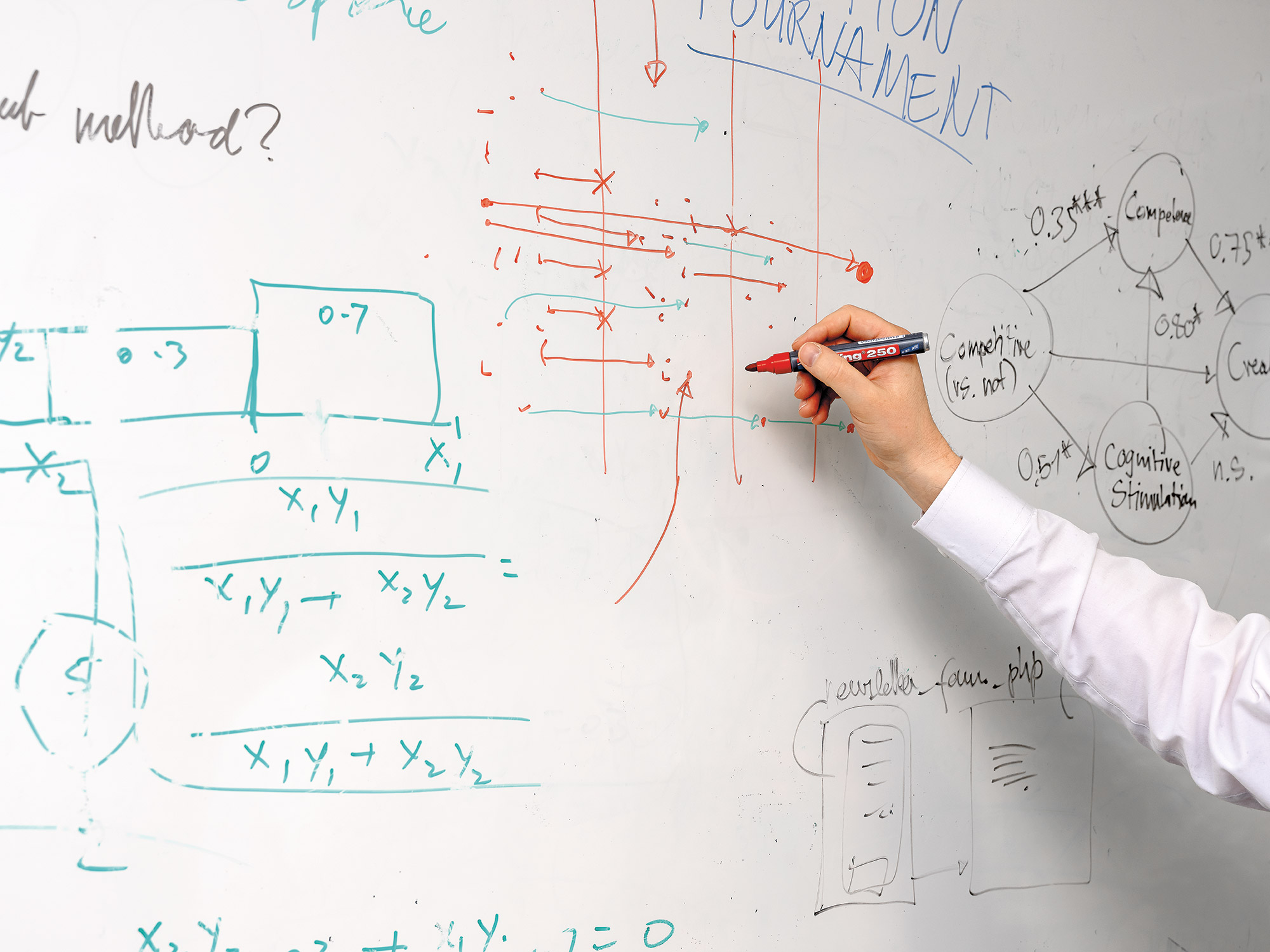 «Um den Überblick zu bewahren, skizziere ich gerne an meinem Whiteboard. Es ist auch im Einsatz, wenn Studierende oder Assistierende mit Fragen kommen und ich ihnen etwas anschaulich erklären möchte.»
