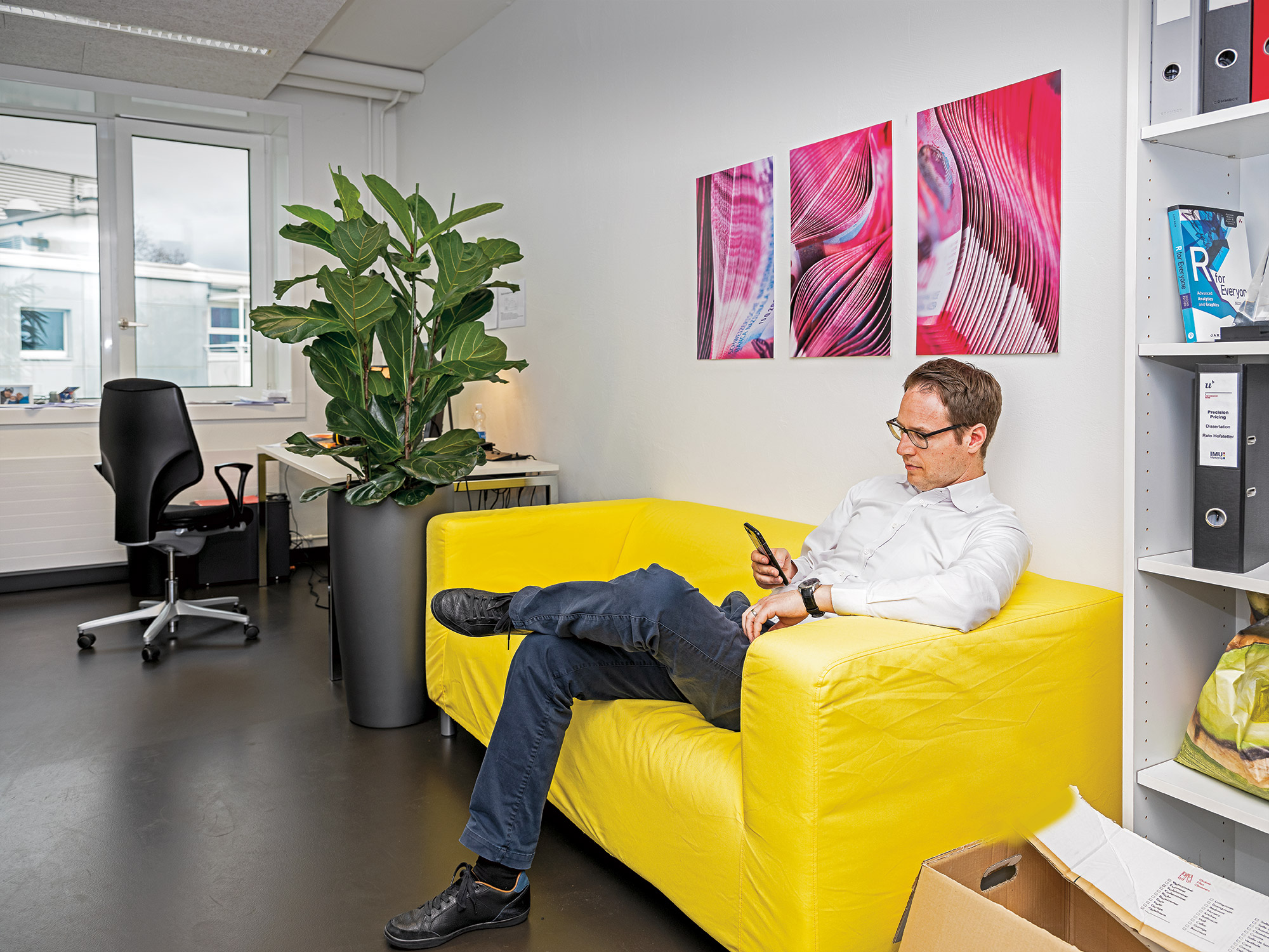 Immer wieder wird Reto Hofstetter auf die auffällige Farbe des Sofas in seinem Büro angesprochen. «Darauf sitzen tun sie aber alle gerne», meint der Marketing-Professor mit einem Augenzwinkern.