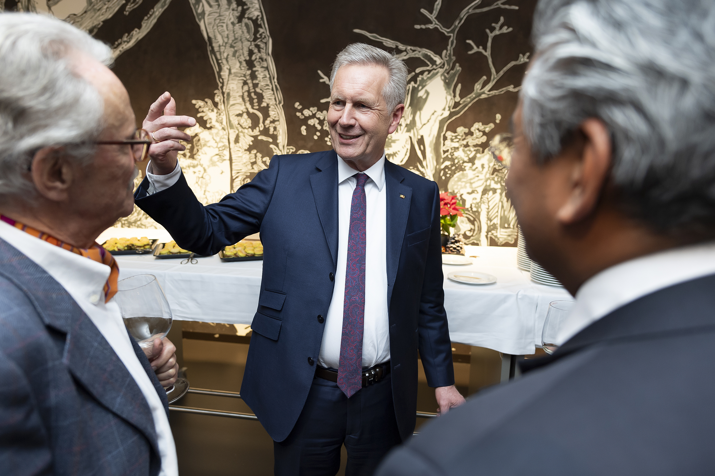 In seiner Analyse der aktuellen Lage ging Christian Wulff auch auf die Erosion der Demokratie, die Anziehungskraft des Autoritarismus in Krisenzeiten und die Instrumentalisierung der Angst durch politische Akteure ein. Dabei scheute er sich nicht, auch kontroverse Themen wie das Erstarken des Rechtsextremismus anzusprechen und die Positionen der AfD in Deutschland als demokratiefeindlich zu kritisieren. Doch Wulffs Botschaft angesichts all dieser besorgniserregenden Entwicklungen war klar: Um die Stärke der freiheitlichen Demokratien zu erhalten, müssen wir feste Standpunkte ebenso pflegen wie den Respekt vor anderen Meinungen. Und er zitierte den Schweizer Staatsrechtler und Politiker Carl Hilty, der einmal gesagt haben soll, dass das Glück des Lebens nicht darin bestehe, keine Herausforderungen zu haben, sondern diese zu meistern.