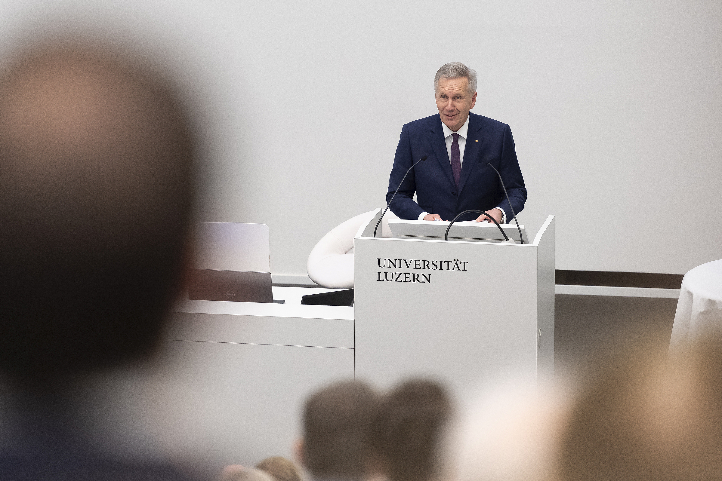 Christian Wulff war der fünfte Redner in der Reihe der «Presidential Lectures» an der Universität Luzern. Der ehemalige deutsche Bundespräsident sprach über den Druck, dem Demokratien zunehmend ausgesetzt sind – und was wir als Bürgerinnen und Bürger dagegen tun können.
