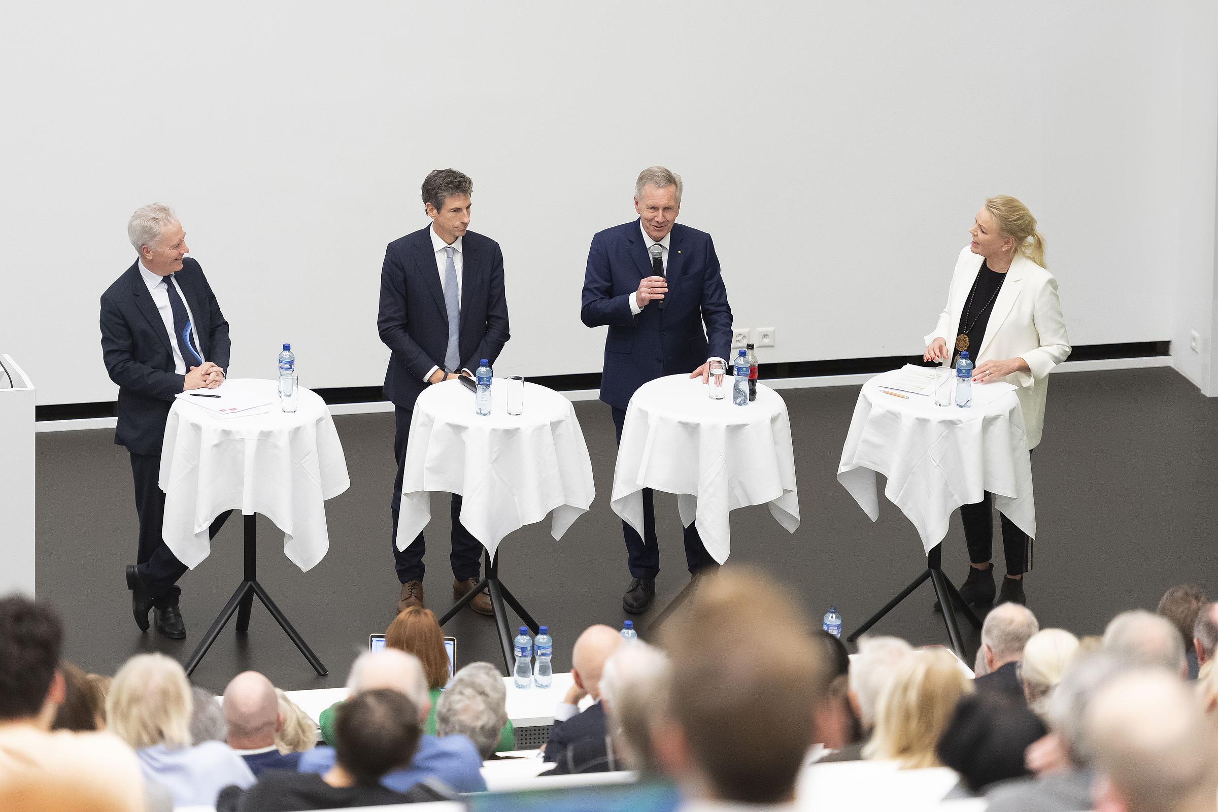 Schliesslich verwies er auf die Megatrends, die 250 renommierte Wissenschaftlerinnen und Wissenschaftler bereits vor sechs Jahren in ihrem Bericht an den amerikanischen Präsidenten benannt hatten: Die westlichen Mittelschichten geraten unter Druck, der Anteil der Erwerbstätigen an der Gesamtbevölkerung sinkt, der Populismus gewinnt an Boden, während gleichzeitig das Regieren schwieriger wird; kriegerische Auseinandersetzungen nehmen zu, der Klimawandel beschleunigt sich und neue Infektionskrankheiten drohen. Schliesslich bringe der technologische Fortschritt viele Chancen, aber auch Risiken und Herausforderungen mit sich. Bemerkenswert sei, so Wulff, dass mit der Pandemie sowie den Kriegen in der Ukraine und in Israel zwei der Vorhersagen die Welt mit unerwarteter Wucht getroffen hätten.