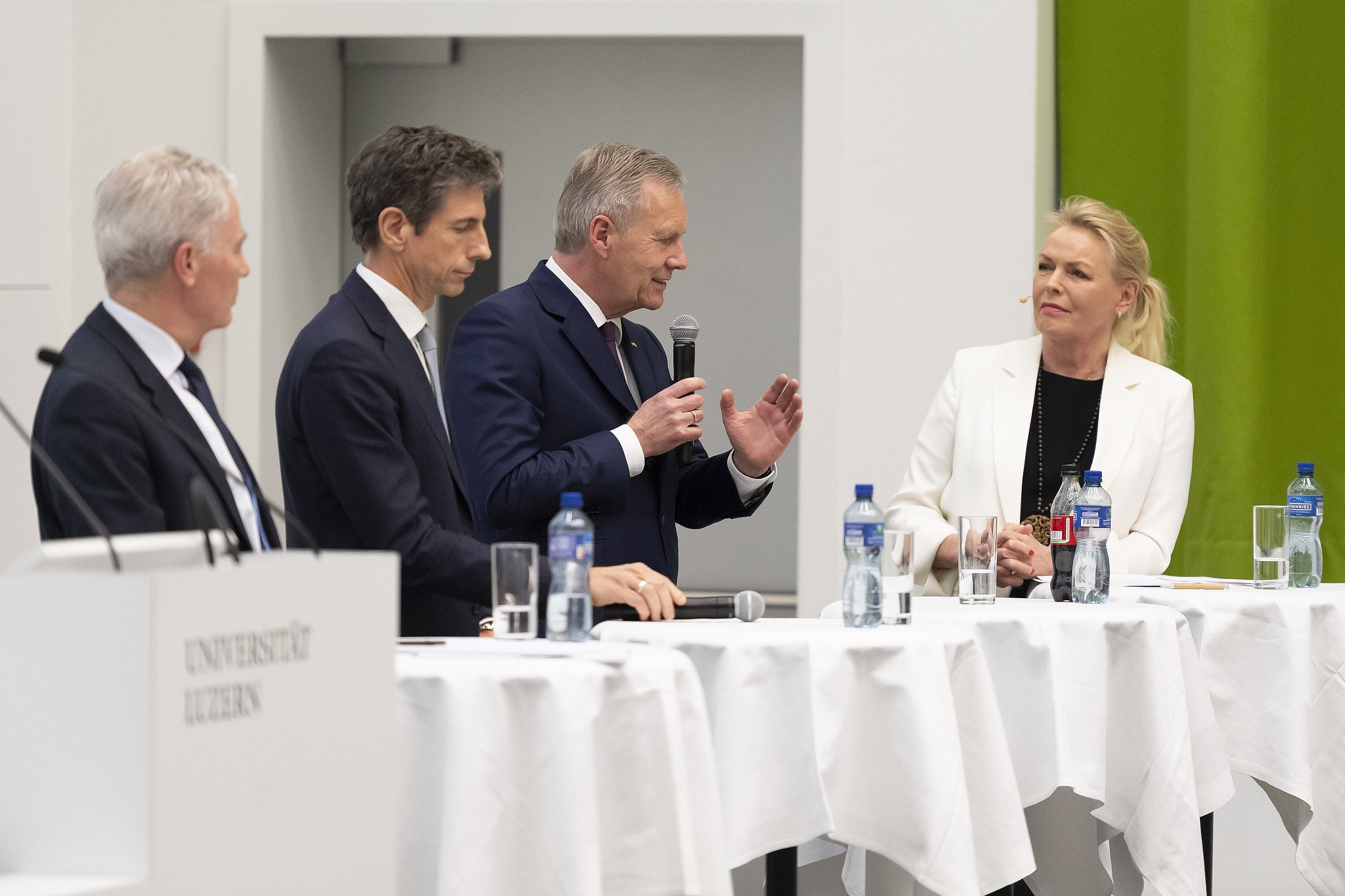 Abgerundet wurde die Veranstaltung durch eine von SRF-Journalistin Katja Stauber moderierte Diskussion, an der neben Rektor Staffelbach auch Bernhard Rütsche, Stv. Rektor und Ordinarius für Öffentliches Recht und Rechtsphilosophie, teilnahm. Wulffs Schlusswort klang nach: Die Herausforderungen unserer Zeit mögen entmutigen, aber sie sind mit Entschlossenheit und gemeinsamem Handeln zu meistern.