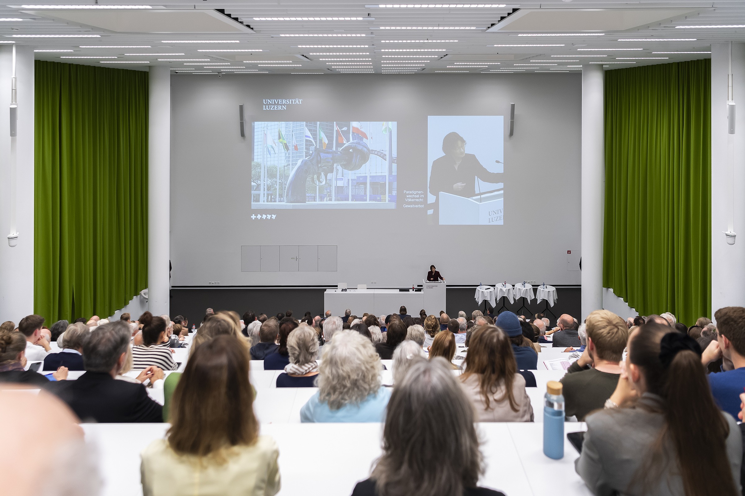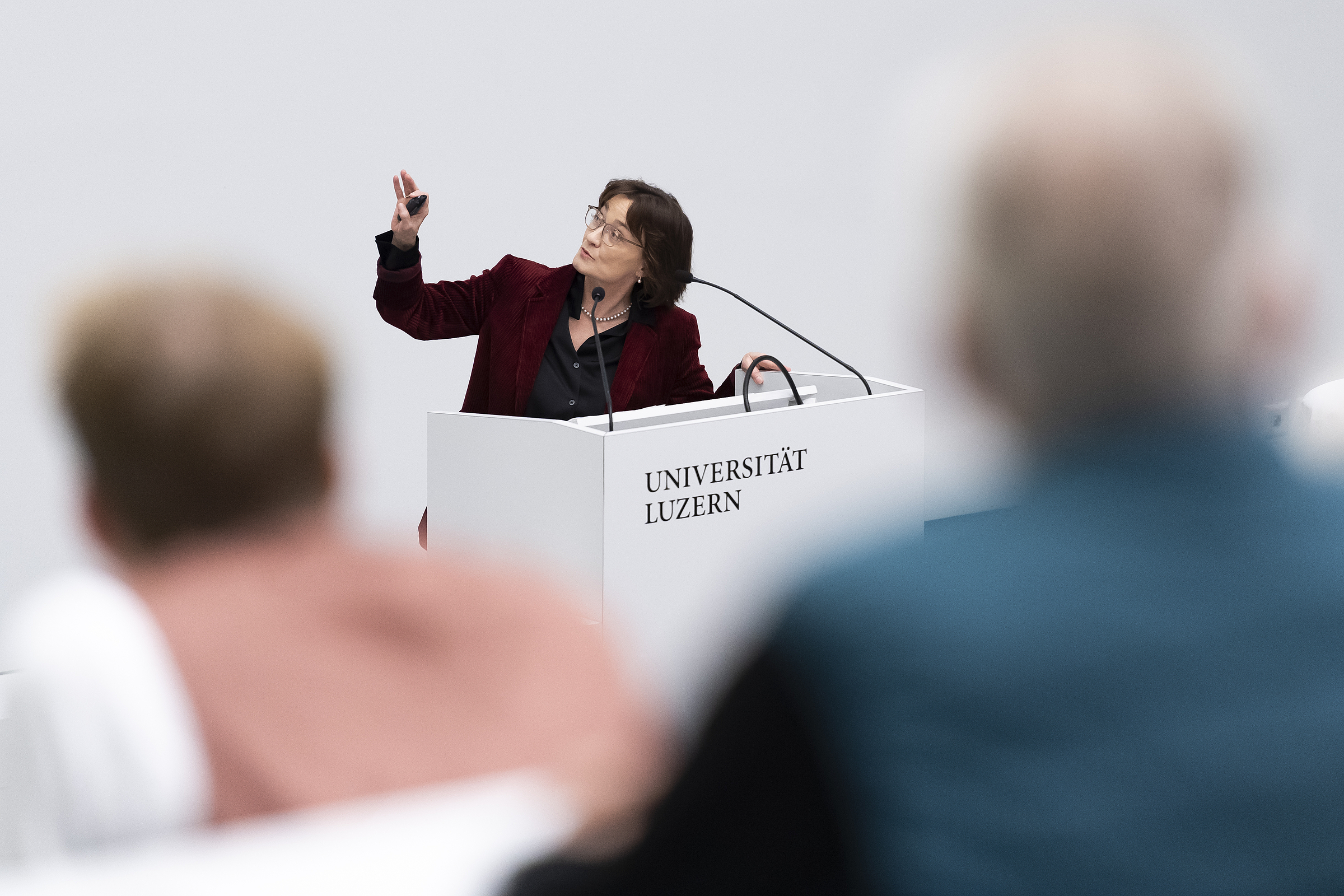 Ein bis auf den letzten Platz gefüllter Hörsaal unterstrich die Aktualität dieser Ausgabe der «Presidential Lectures». Aufgrund des eskalierenden Nahostkonflikts verschärfte sich die geopolitische Sicherheitslage zuletzt – einmal mehr – drastisch. Es sind Tage, in denen die internationale Diplomatie auf Hochtouren läuft. Vor diesem Hintergrund erhielt das Referat von Botschafterin Pascale Baeriswyl an der Vorlesungsreihe der Universität Luzern am 26. Oktober zusätzliches Gewicht. Die Baslerin ist Chefin der Ständigen Mission der Schweiz bei den Vereinten Nationen in New York. Weil die Schweiz seit Januar 2023 erstmals als eines von zehn gewählten Mitgliedern im Uno-Sicherheitsrat wirkt, befindet sich Baeriswyl direkt am Puls des Geschehens. Umso spannender waren die Einblicke, die sie dem Luzerner Publikum bot.