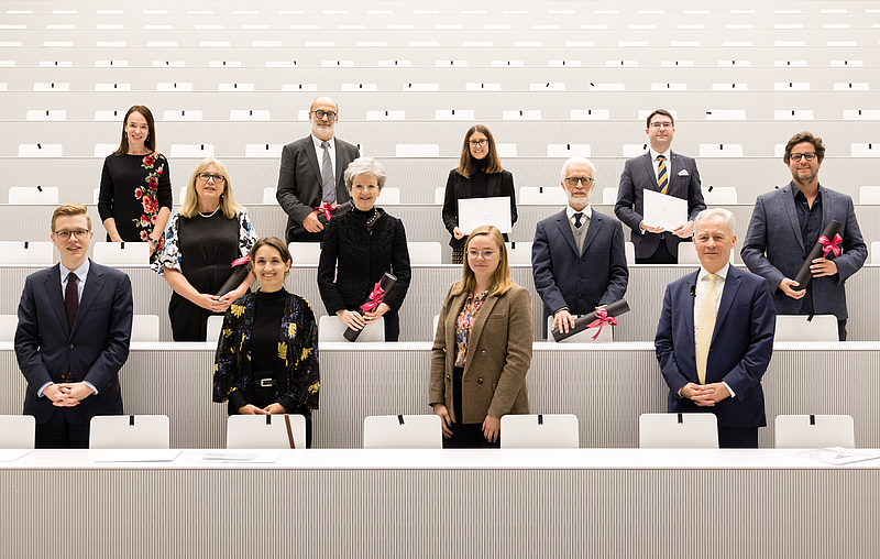 Bei den anschliessenden Ehrungen und Auszeichnungen erhielten Prof. Dr. iur. et Dr. iur. can. Mary McAleese, Prof. Dr. Hanspeter Kriesi, Prof. em. Dr. Pietro Costa, Prof. Dr. Cait Lamberton sowie Prof. Dr. med. Verena Briner die Ehrendoktorwürde. Der «Credit Suisse Award for Best Teaching» ging an Dr. Patrick Schenk. Der Universitätsverein verlieh seine Dissertationspreise an Sr. Dr. Franziska Mitterer, Dr. des. Markus Unternährer, Dr. Dario Picecchi, Dr. Melanie Häner sowie Dr. des. Yael Rachamin.
