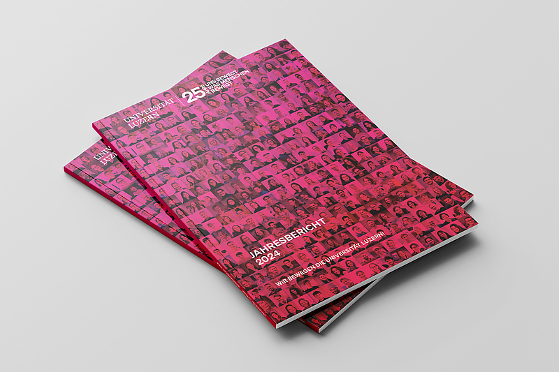 Das zentral gelegene Gebäude direkt neben Bahnhof und See fällt mit seiner speziellen Fassade unweigerlich ins Auge. Doch die Universität lässt sich selbstverständlich nicht auf Architektur und moderne Infrastruktur reduzieren: So ist es vielmehr der «Inhalt», so sind es die hier tätigen Menschen, welche dem Gebilde aus Stein und Glas Leben einhauchen und dieses zu einer dynamischen Stätte des Forschens, Lehrens und Lernens machen. Daher sind auf dem Cover des druckfrischen Jahresberichts der Universität und auf mehreren Doppelseiten im Innenteil Porträtfotos von hier wirkenden Menschen zu sehen: Forschende, in der Administration oder im technischen Bereich Arbeitende, Dozierende und Studierende sowie Mitarbeitende des Standorts der Zentral- und Hochschulbibliothek Luzern im Uni/PH-Gebäude und solche der Mensa «1574», die von der Genossenschaft ZFV-Unternehmungen betrieben wird.