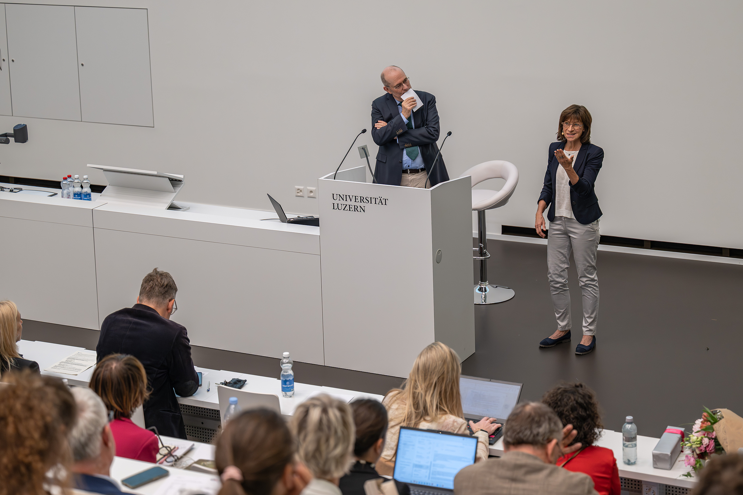 Heidi Hanselmann, Präsidentin der Schweizer Paraplegiker-Stiftung, zeigte in ihrem Vortrag, wie Menschen mit Querschnittlähmung mehr Selbstbestimmung und Inklusion ermöglicht werden soll. Die Veranstaltung bildete den Auftakt zur neuen Vortragsreihe «LIFE B. Braun Lectures» an der Universität Luzern.