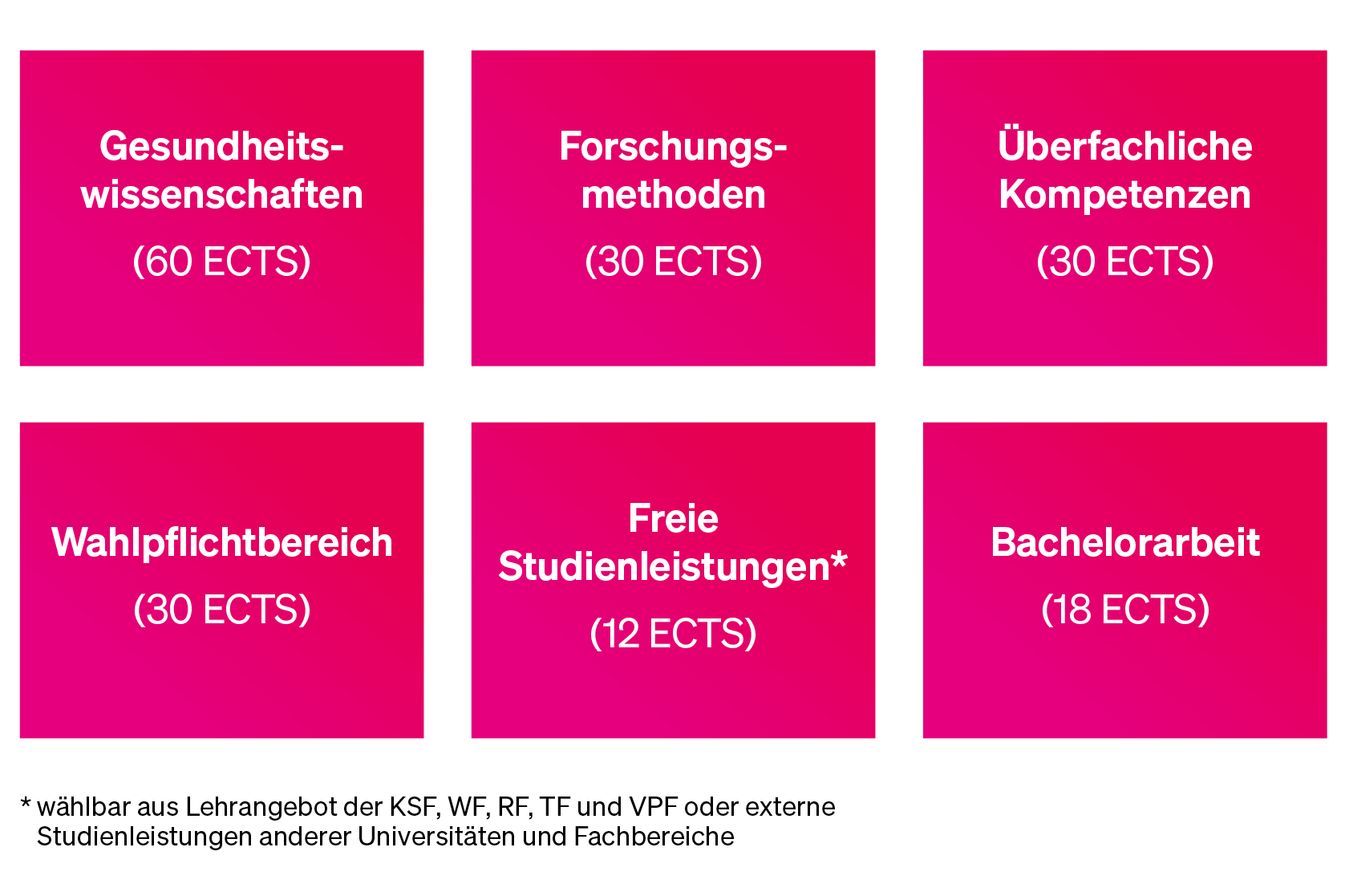 Der Bachelorstudiengang umfasst die folgenden Gebiete der Gesundheitswissenschaften: