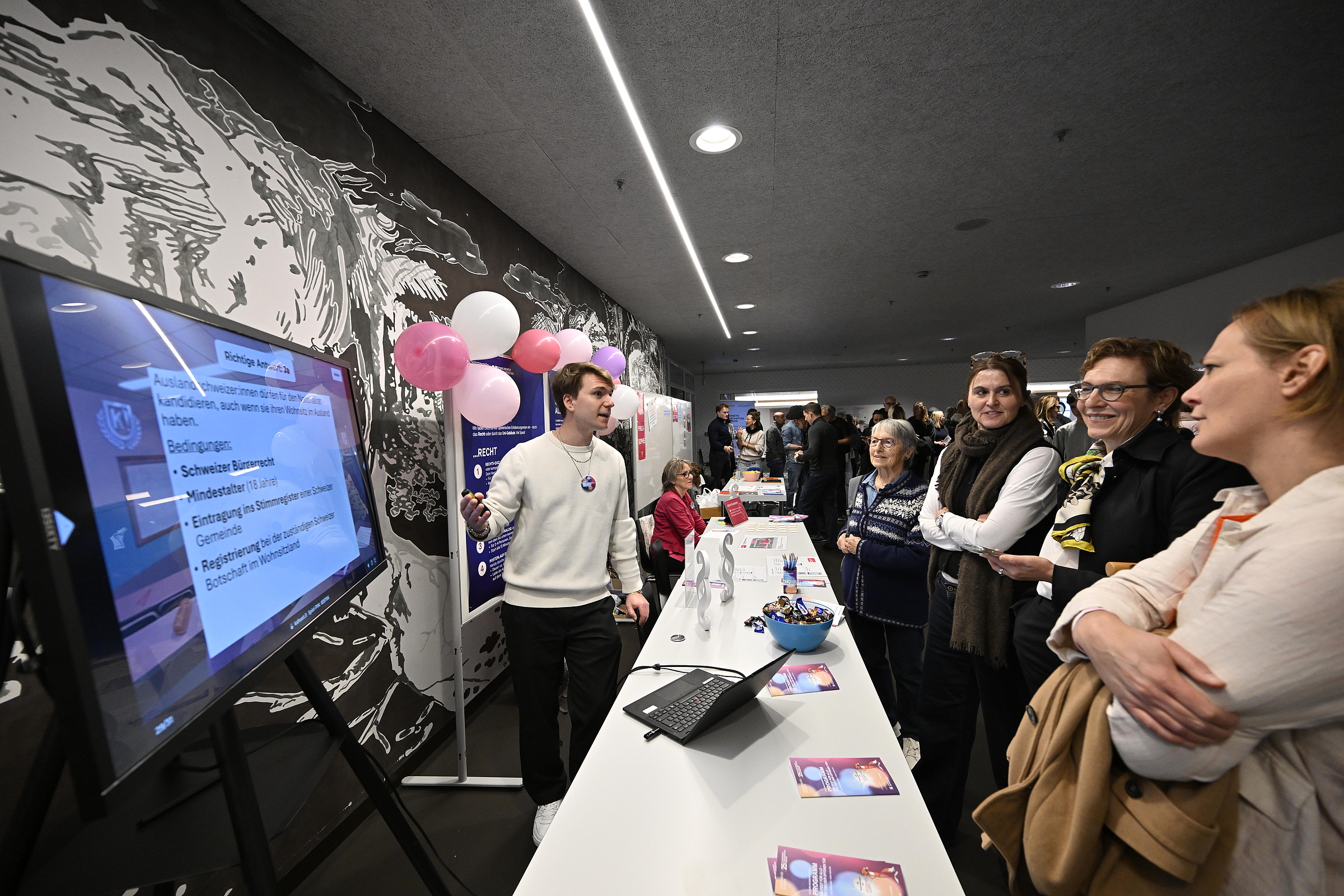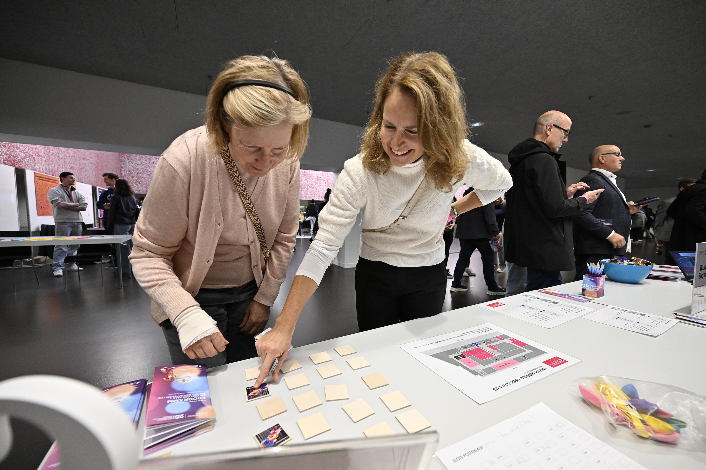 Den Gästen wurde ein vielfältiges Programm geboten, das spannende Einblicke in aktuelle Forschungsthemen, die Studiengänge und das Uni-Leben brachte. Vermittelt wurde dies in Ausstellungen, interaktiven Präsentationen, Kurzvorträgen, Gesprächsrunden und Führungen, aber auch in Form von Quiz, Spielen, kreativen und partizipativen Aktionen. Das Angebot stiess auf grosses Interesse und vermochte zu begeistern. Newsbeitrag zum Jubiläumsanlass