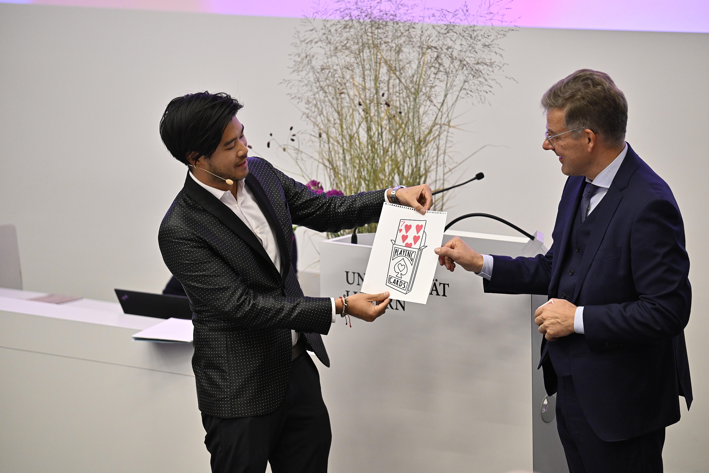 Am Festakt überbrachten Kanton und Stadt sowie die beiden anderen Hochschulen auf dem Platz Luzern Grussbotschaften. Mittendrin und von hoher Symbolhaftigkeit: ein roter und ein schwarzer Schal.